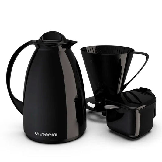 Kit Garrafa Termica Café Prático com Açucareiro com Colher e Suporte para Filtro - Preto