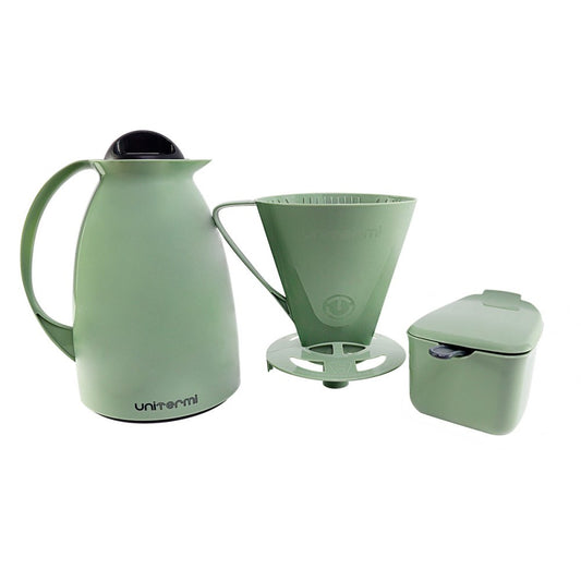 Kit Garrafa Termica Café Prático com Açucareiro com Colher e Suporte para Filtro - Verde