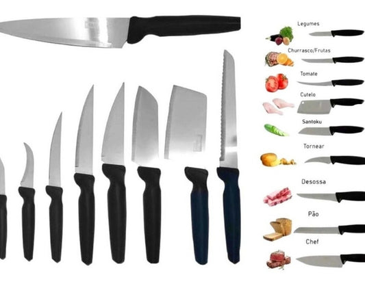 Jogo De Facas Faqueiro 9 Peças Plenus Aço Inox