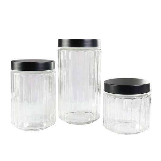 Conjunto de Potes de Mantimentos com 3 Peças de Vidro e Tampa de Inox
