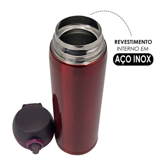 Garrafa Isotérmica 500ml com Tampa Plástica Fosca com Trava de Segurança - Vermelho