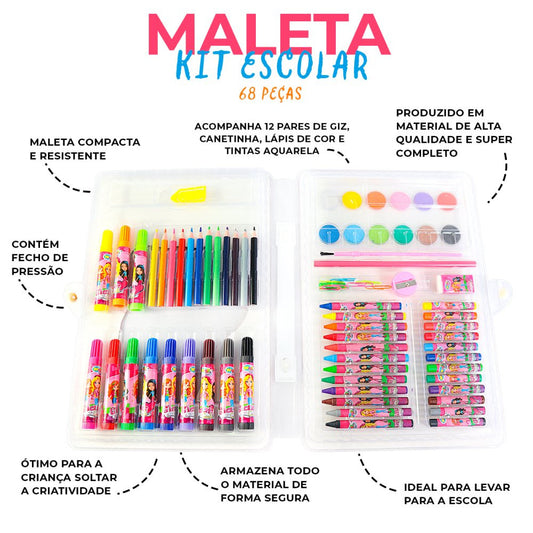 Maleta Kit Escolar com 68 Peças Glam Girls