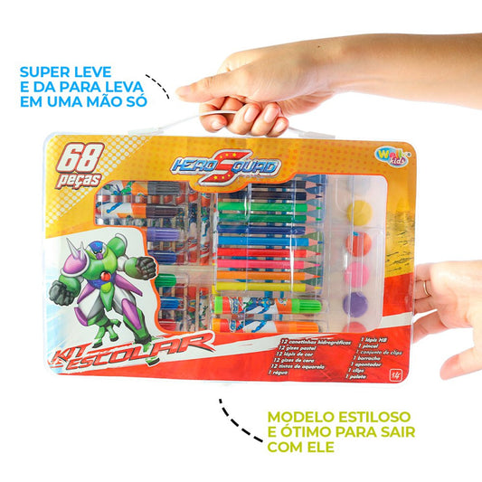 Maleta Kit Escolar com 68 Peças Hero Squad