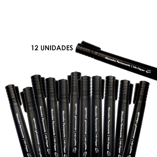 Caneta Marcador Permanente Retroprojetor com 12 Unidades - Preto